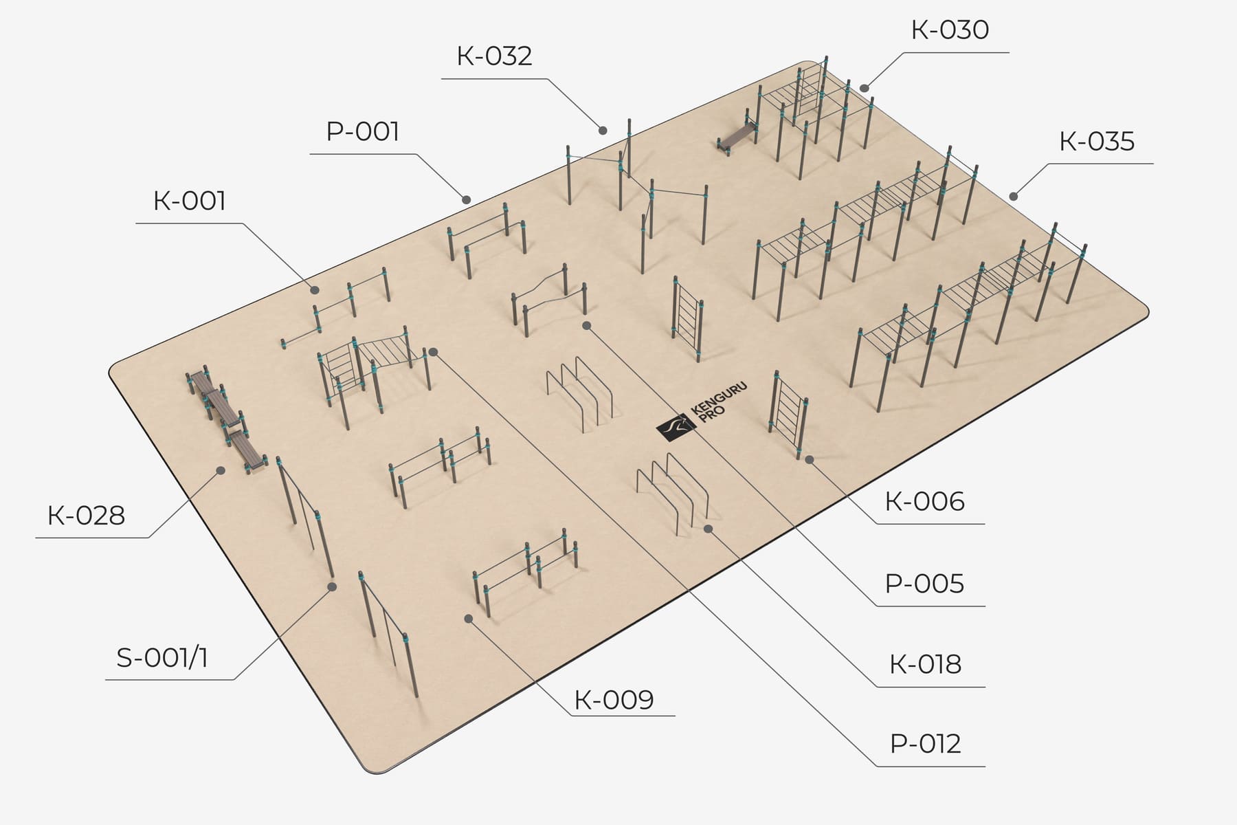 Воркаут площадка №10 - 540 м2 (30 х 18 м) KENGURU.PRO – купить по низкой цене производителя | Интернет-магазин AMIRAT.RU