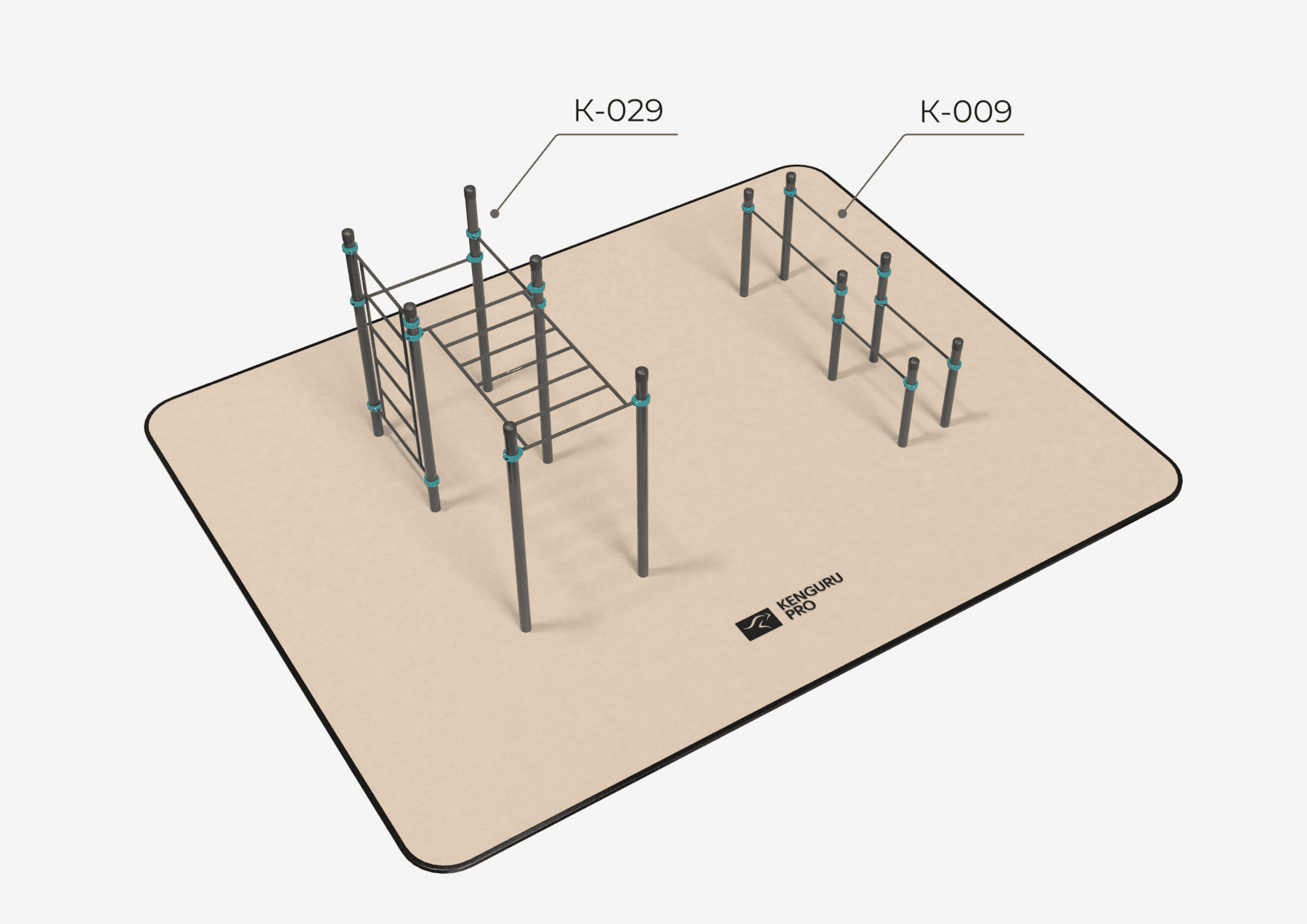 Воркаут площадка №2 - 63 м2 (9 х 7 м) KENGURU.PRO