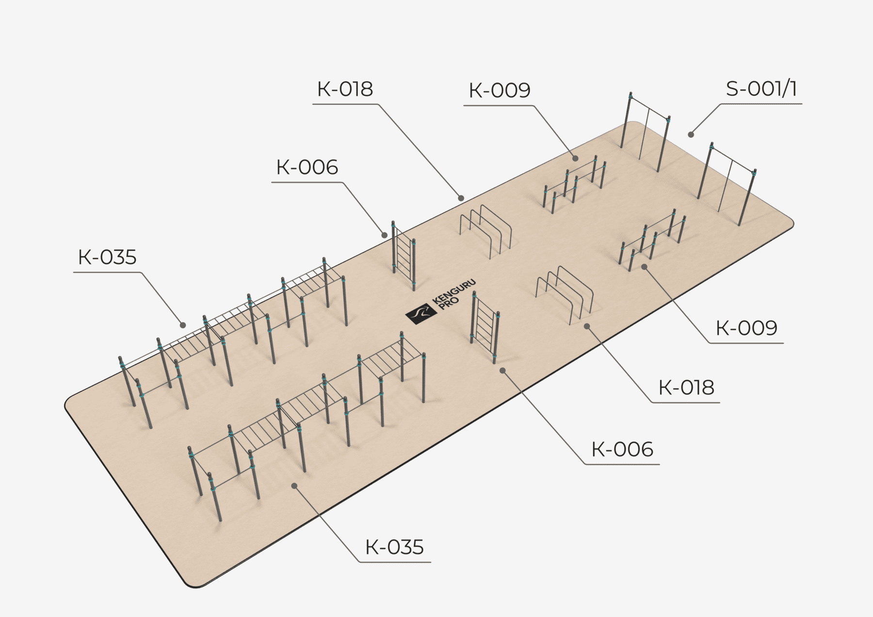 Воркаут площадка №7 - 300 м2 (30 х 10 м) KENGURU.PRO – купить по низкой цене производителя | Интернет-магазин AMIRAT.RU