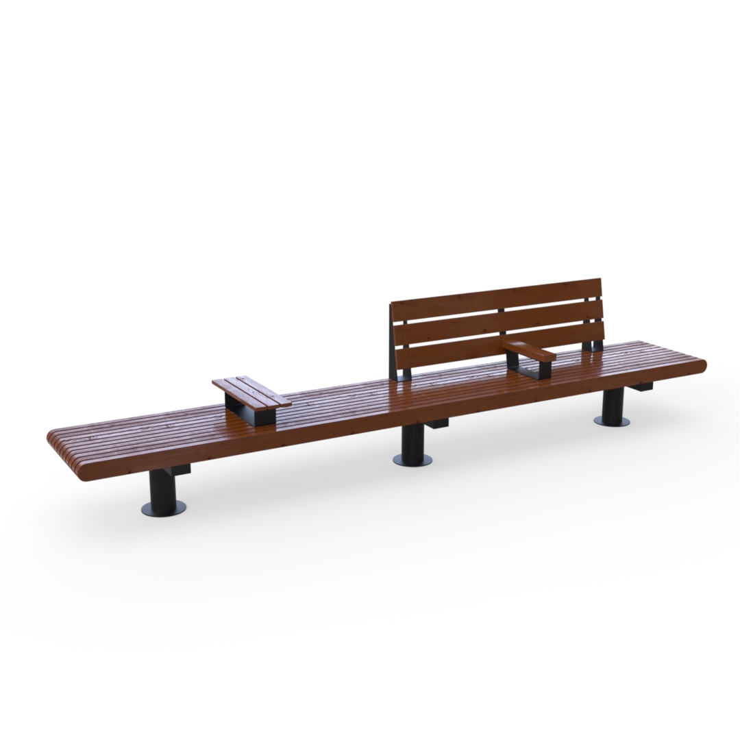 Скамейка Rail Road 01 двойная с подлокотником и подставкой 01.374