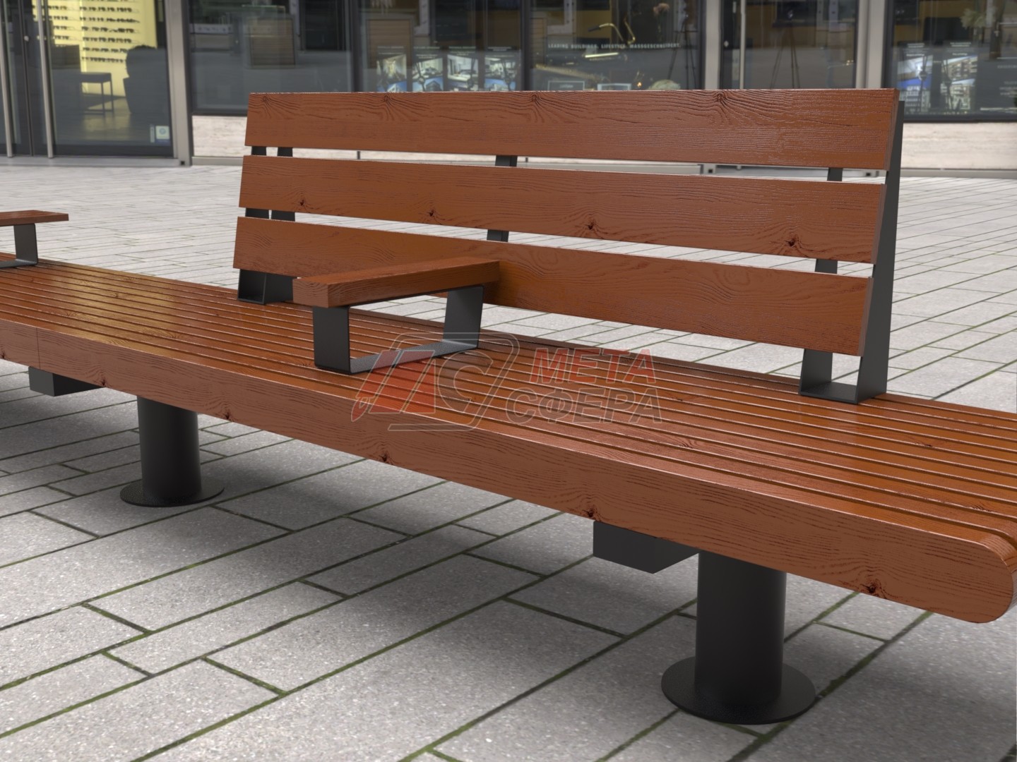 Скамейка Rail Road 01 двойная с подлокотником и подставкой 01.374 – купить по низкой цене производителя | Интернет-магазин AMIRAT.RU