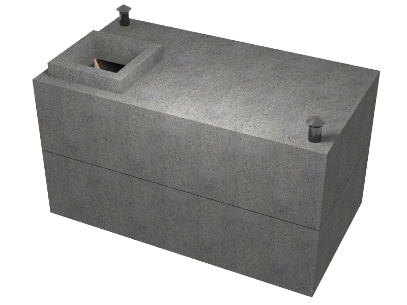 3х2х2,5м - 12м3 Погреб состоит из пяти элементов: дно, три короба, крышка с отверстием под лаз и двумя отверстиями для вентиляции диаметром 100 мм.