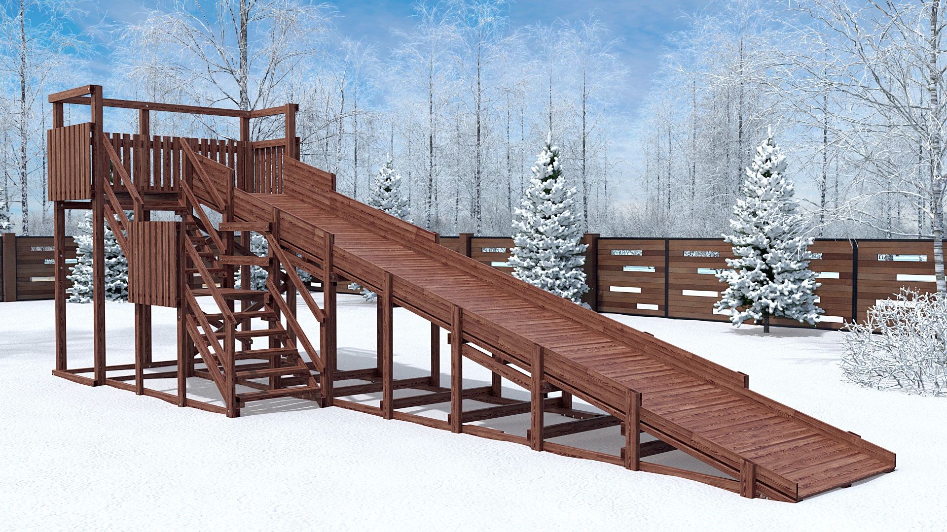 Зимняя деревянная горка W-8 (длина ската 8 м) W-9 SPORTMEN – купить по низкой цене производителя | Интернет-магазин AMIRAT.RU