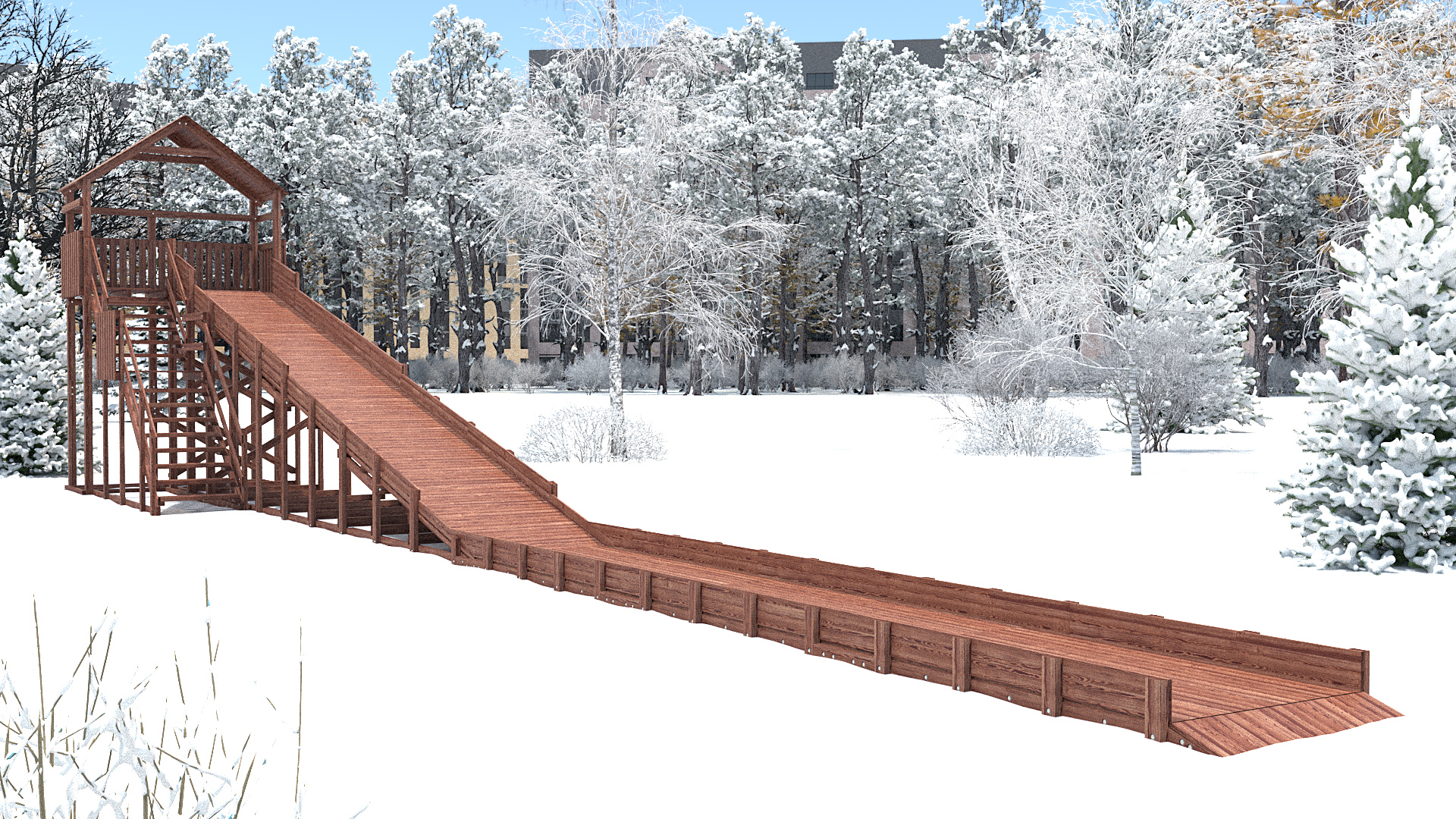 Зимняя деревянная горка WF-10 с крышей и выкатом (длина ската 10м) WF-10 SPORTMEN – купить по низкой цене производителя | Интернет-магазин AMIRAT.RU